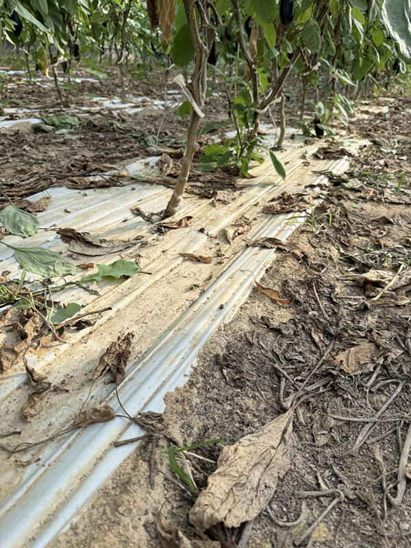 水を貯えず、表面を流れ落ち、わずかながら水を吸った土の水を少しでも逃がさぬようマルチはするが、うねは作らない。