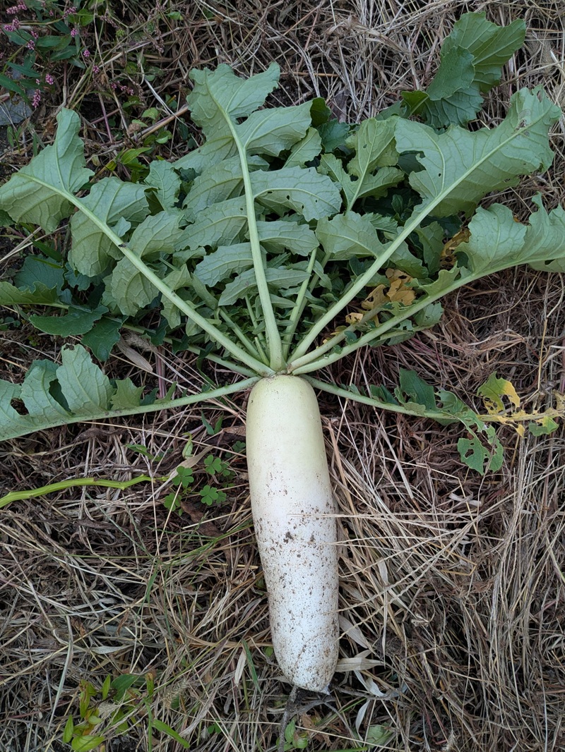 こちらのダイコン、移植栽培のものだがしっかりと育っている。