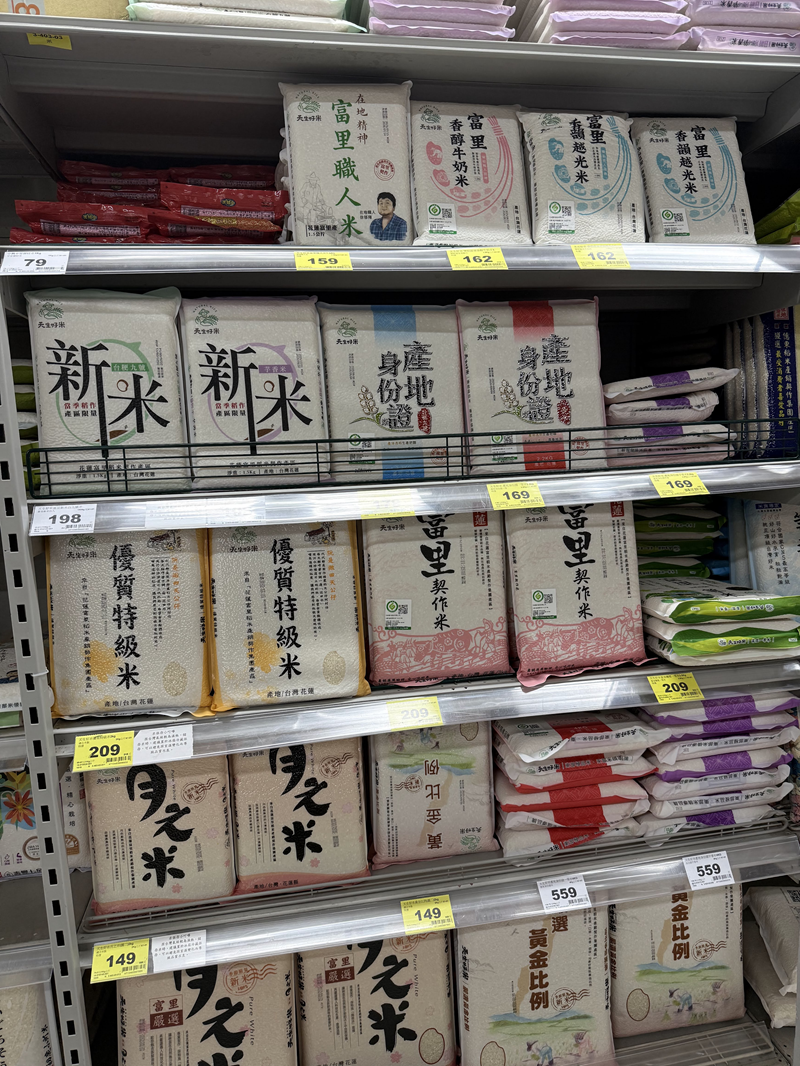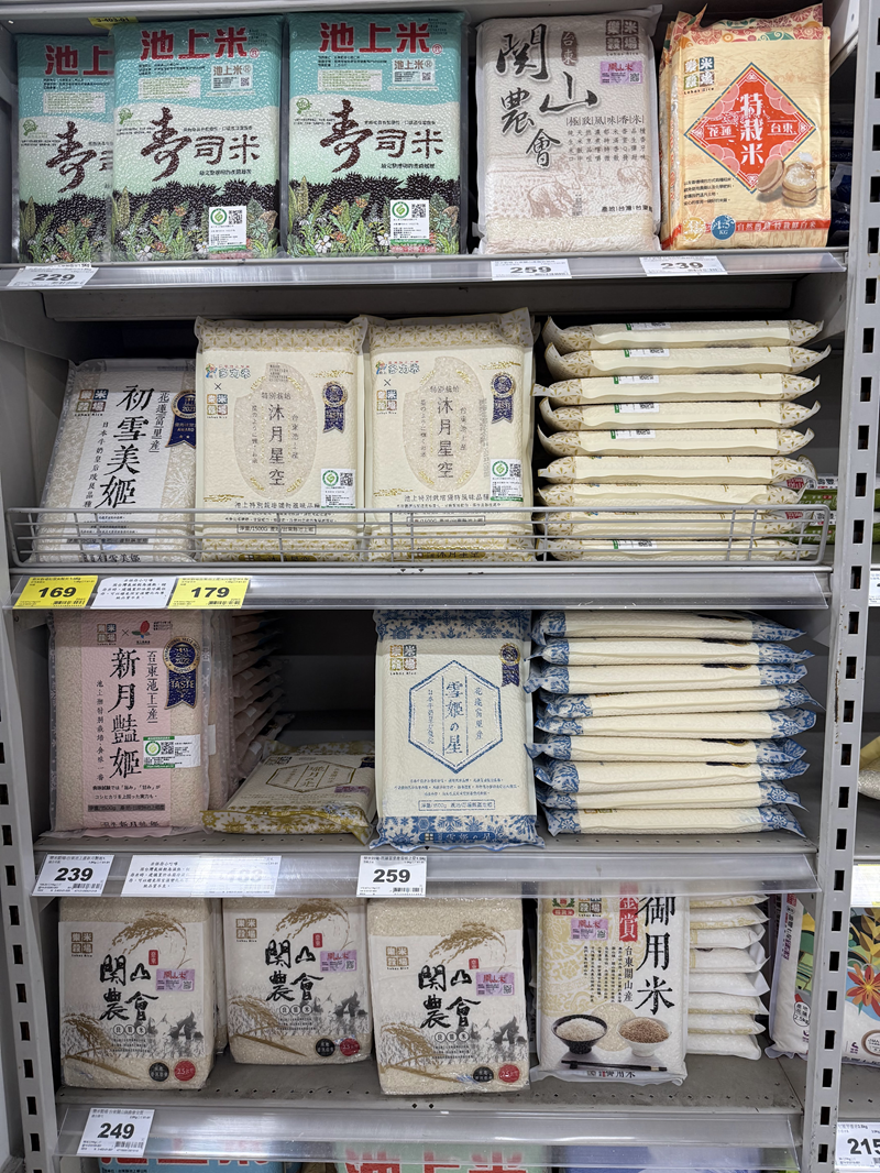 台湾もお米をよく食べるのもあってかなりの品種が置いてあることに驚いた。