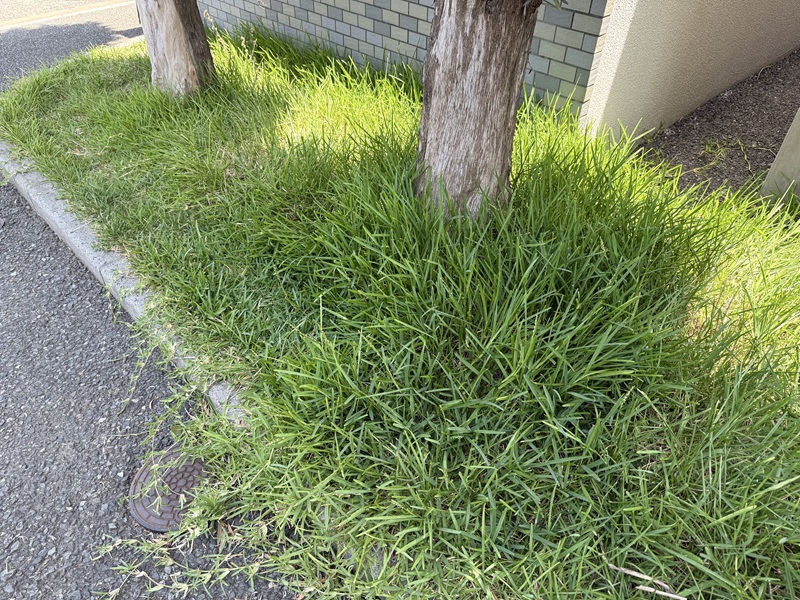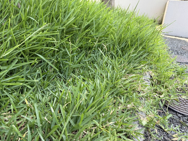 このセントオーガスチングラスであれば適度な踏圧を受ければ芝刈りも必要ないくらいの高さで済むようだ。