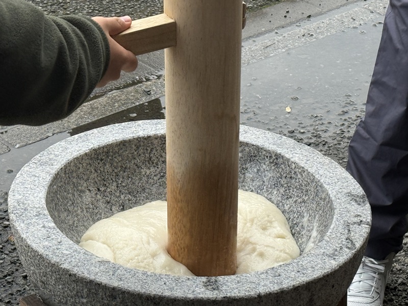 気温が低ければその分もち米がどんどん硬くなるので急いで蒸したもち米をついて餅にしないといけません。