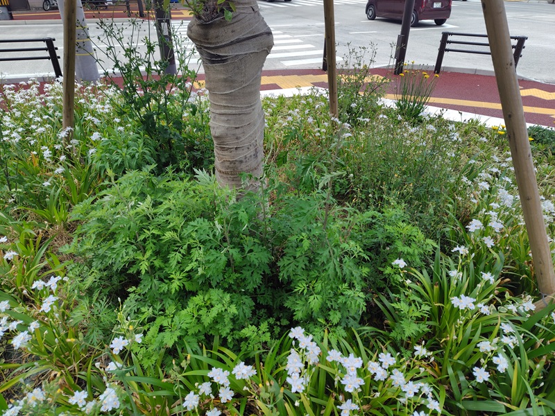 シートがはってない植樹回りはほぼ雑草で占められていた。